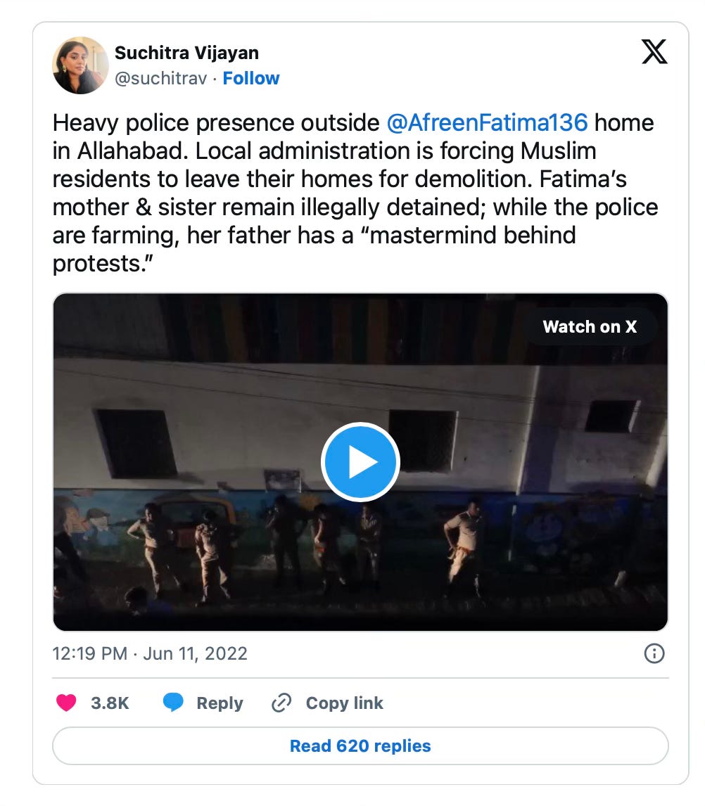 More here on the incident and bulldozer demolitions in India: The Demolitions Project (The Polis Project)