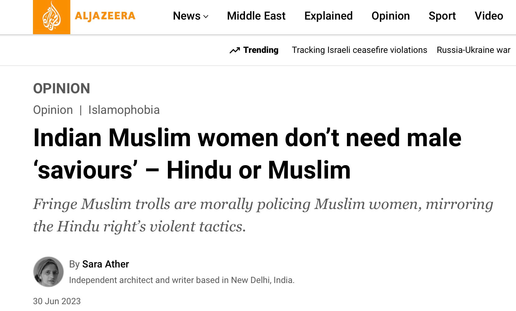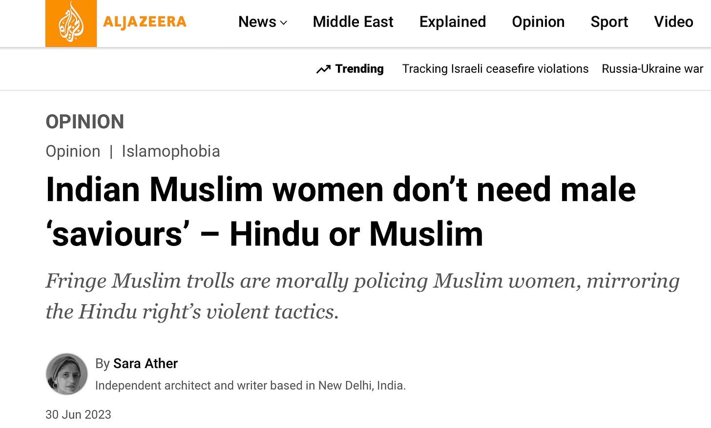 Read Sara Ather’s recent work on Indian Muslim feminism here.