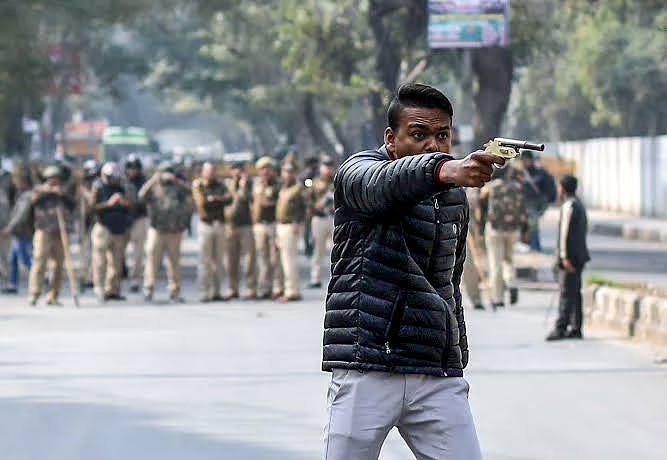 Gunman attacking protestors. Photo by slain Pulitzer-winning Reuters photographer, Danish Siddiqui, Delhi 2020 (National Herald)